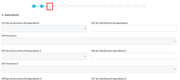En la página web de la DIAN, la información de los dependientes adicionales se digitan en la sección 3 del orden del llenado, y al digitar los datos de los 4