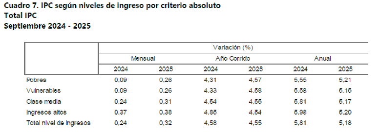 consumidor para ingresos medios o clase media durante el periodo de octubre 1 de 2024 a octubre 1 de 2025; dato que fue publicado por el DANE en su página WEB.